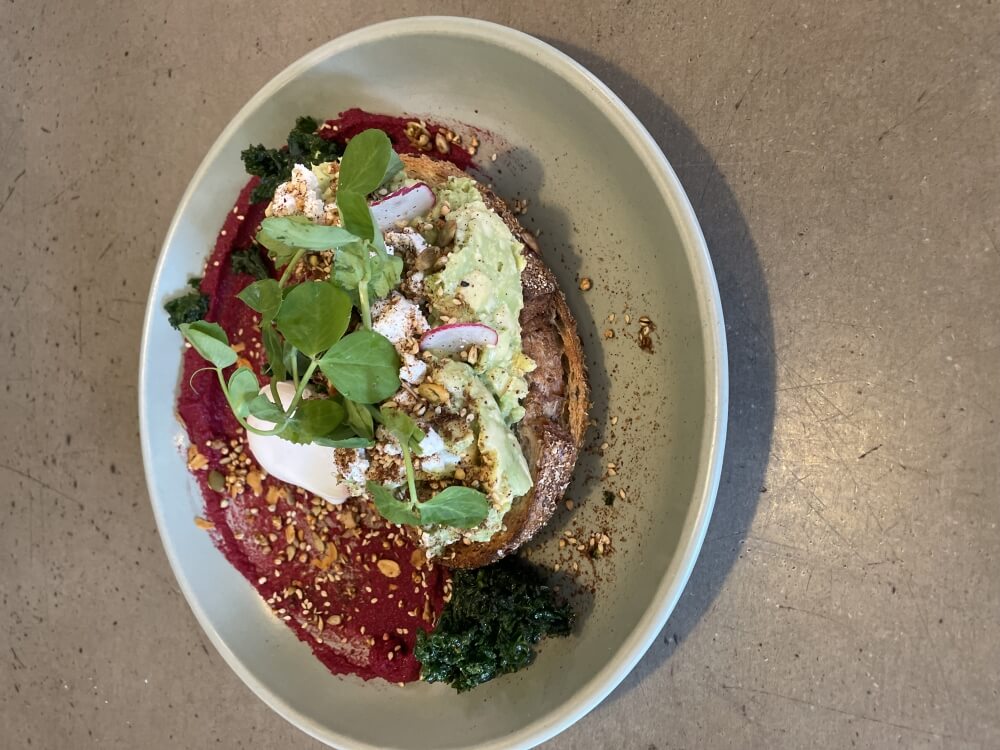 beetroot hummus, goats feta, savory granola, crispy kale, pomegranate, radish, dukkah (GFO)
